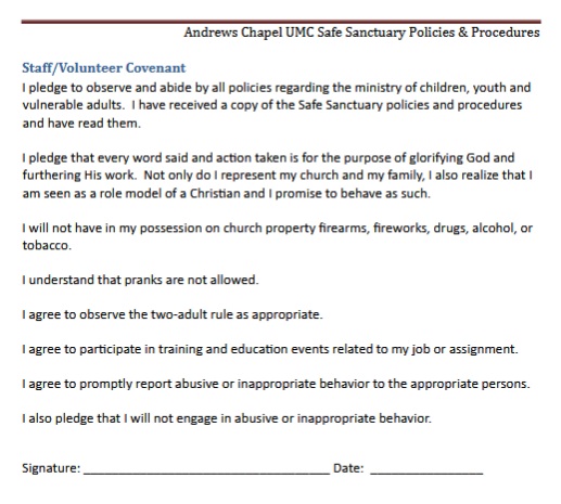 Safe Sanctuary Training – Resources 1. Click to read – ACUMC-Safe-Sanctuary-Policy-and-Procedures 2. Click to read – Safe-Sanctuary- Staff/Volunteer Covenant